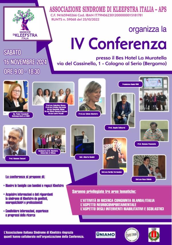 Conferenza italiana Sindrome di Kleefstra - 16 novembre 2024 - Bergamo