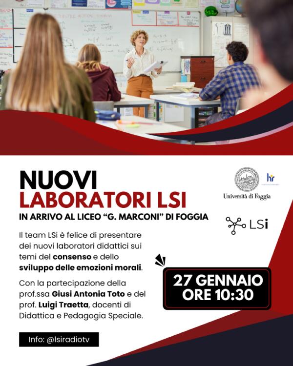 L’Università di Foggia porta i nuovi laboratori LSi al Liceo Scientifico “Guglielmo Marconi” di Foggia