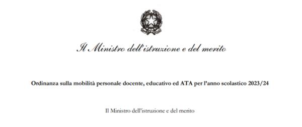 Ordinanza sulla mobilità personale docente, educativo ed ATA per l’anno scolastico 2023/24