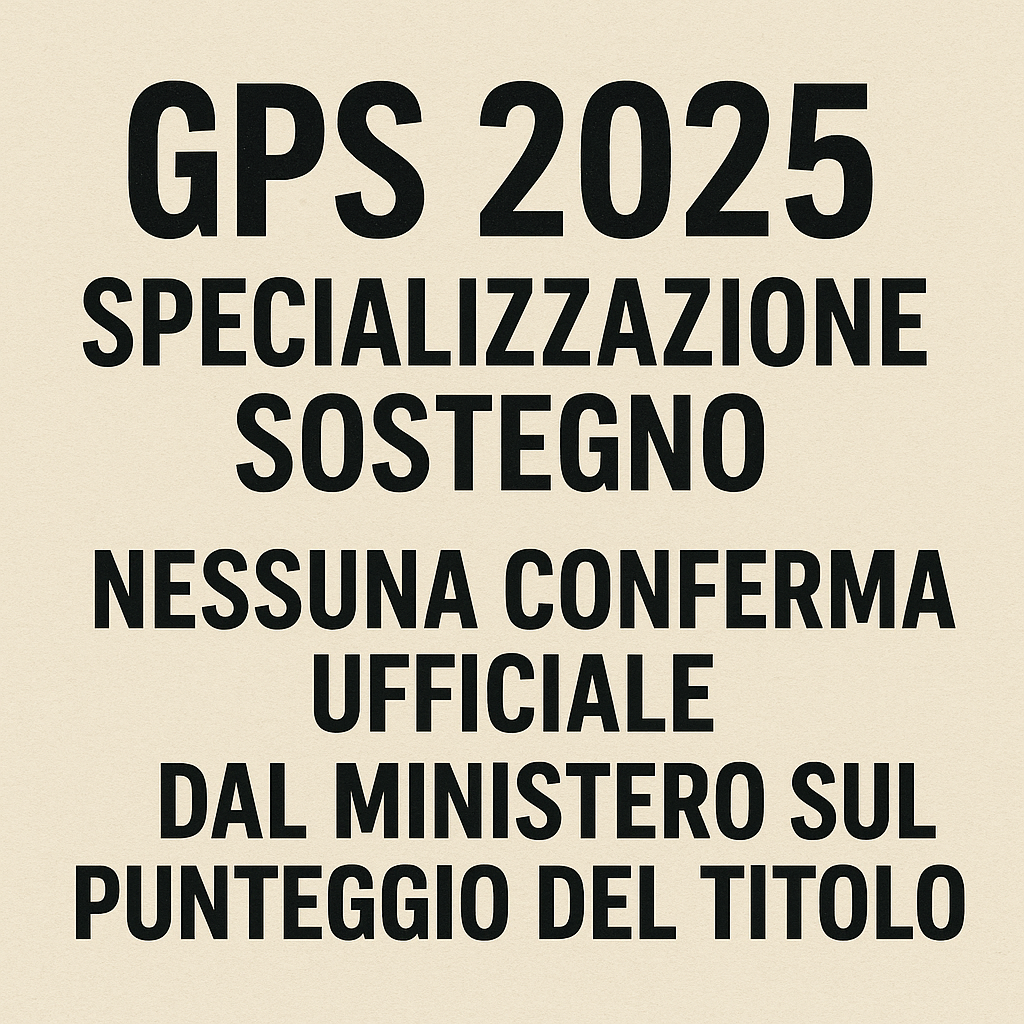 Ad oggi, il Ministero non ha trasmesso ai sindacati né alle organizzazioni rappresentative della scuola alcuna informativa ufficiale in merito ai criteri di valutazione del titolo di specializzazione per gli elenchi aggiuntivi alla prima fascia GPS 2025.