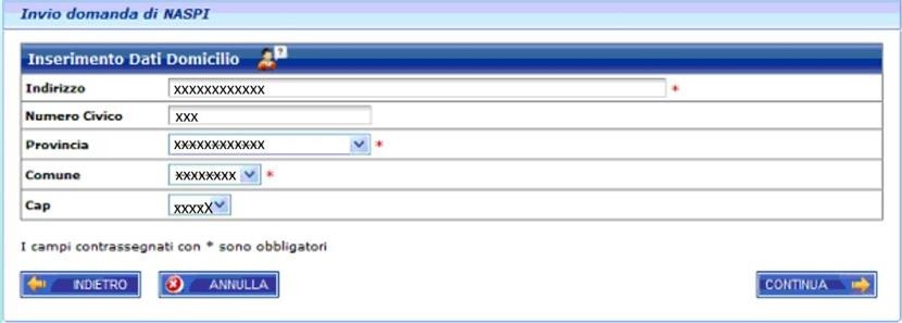 Se il attuale domicilio non corrisponde all’indirizzo indicato, bisogna spuntare il NO, nella casella evidenziata in basso e aggiungere un recapito postale diverso nella maschera successiva e cliccare CONTINUA.