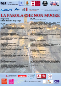 LA PAROLA CHE NON MUORETre giorni di incontri a Bagnoregio e Montefiascone(1°-3 ottobre)VIa edizione Dante, la memoria, la scuola, la malattia[media id="1896"] Festival gemellato con :LA FESTA DELLA S...