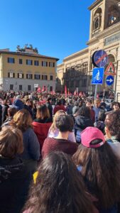 Oggi pomeriggio la Flc Cgil Nazionale, raccogliendo l'appello delle RSU delle scuole di Firenze e di tutte le realtà, ha organizzato questa manifestazione a Firenze, peraltro la sua città, medaglia d'oro della Resistenza