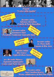 Il 20 maggio, alle ore 10:00, gli studenti dell’IC “Vittorio Alfieri” di Crotone incontreranno online suor Carolina Iavazzo, stretta collaboratrice di Don Pino Puglisi. In tale occasione gli studenti dell’aula dedicata a don Pino Puglisi potranno presentare i propri elaborati e interagire con l’illustre ospite. L’incontro costituirà certamente un’opportunità educativa altamente formativa.