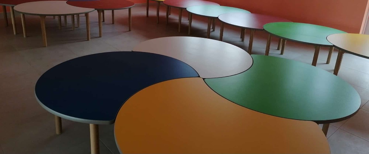 prodotto servendosi delle proprie abilità. L’area destinata alla condivisione sarà caratterizzata da sedute morbide, da un tappeto componibile e da tribunette trasformabili in diverse configurazioni, dotate anche di nicchie porta oggetti: gli alunni potranno interagire, così, in un ambiente di apprendimento vivace e informale. L’insegnante in questo processo di acquisizione linguistica ha un ruolo fondamentale, è colui che, attraverso una relazione educativa, permette di promuovere e motivare la comunicazione. Le attività potranno essere differenziate per le quattro fasce d’età.