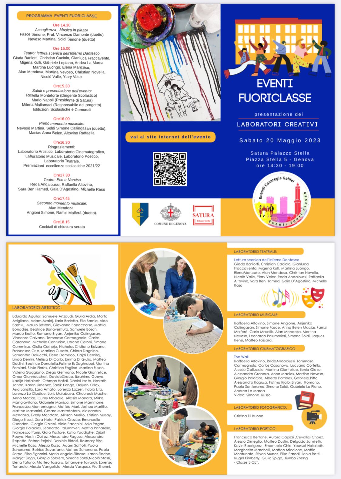 L’idea del progetto ‘Eventi Fuoriclasse‘ nasce dopo aver visitato, con alcune classi del nostro Istituto, Palazzo Stella sede dell’associazione SATURA. Da questo primo incontro si è sviluppata l’idea di mettere a disposizione della Scuola la location del palazzo, per l’organizzazione di un evento che culminerà sabato 20 maggio 2023 in Piazza Stelle 5/1 – 16123 Genova e durante il quale saranno messe in mostra le abilità creative dei nostri allievi, portando la scuola a interagire con il territorio e una visibilità esterna.