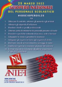 Pacifico ritiene incoraggianti le esternazioni di Bianchi. Certo, non bastano i buoni auspici. Lo sciopero servirà a ribadire le richieste del giovane sindacato su temi non più rinviabili, come il reclutamento dei precari, la parità di diritti dei supplenti rispetto al personale di ruolo, l’adeguamento delle scuole ai bisogni emergenziali e ordinari, come lo sdoppiamento delle classi e l’aumento di organici, l’attenzione per il personale Ata, i Dsga facenti funzione, gli educatori e tutte quelle professionalità della scuola sinora messe all’angolo: “Speriamo sia la volta buona – dice il leader dell’Anief -. Noi intanto venerdì scioperiamo ancora una volta: è la terza in quest’anno scolastico, dopo il 10 dicembre scorso e il primo giorno delle lezioni a settembre in ogni regione. Ci fermiamo per ricordare al Governo di dare le giuste risposte a problemi irrisolti, a partire dall’adeguamento stipendiale per tutti che copra gli almeno i 6 punti percentuali di inflazione che comunque in vita anche dopo l’aumento del rinnovo contrattuale”.
